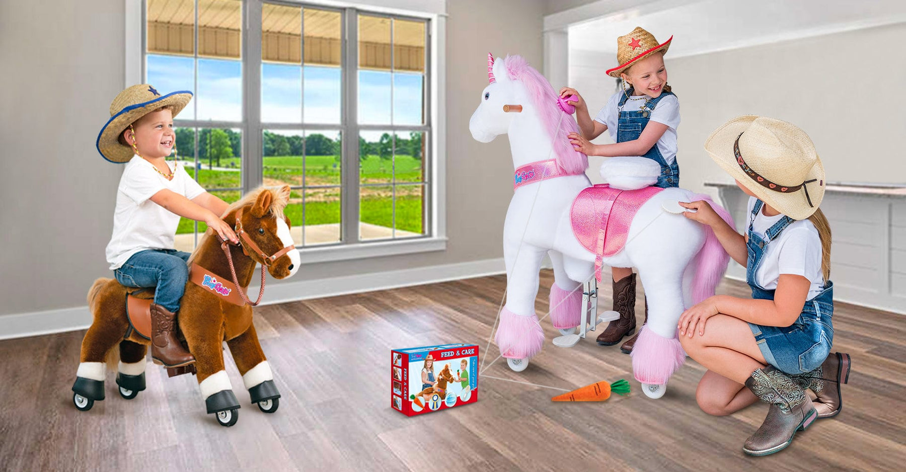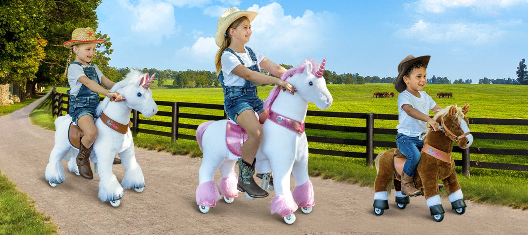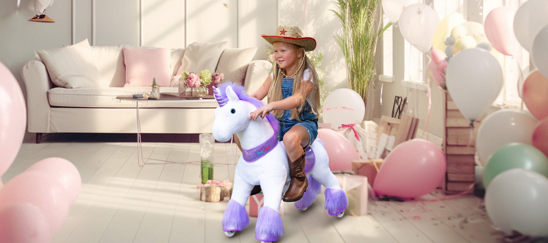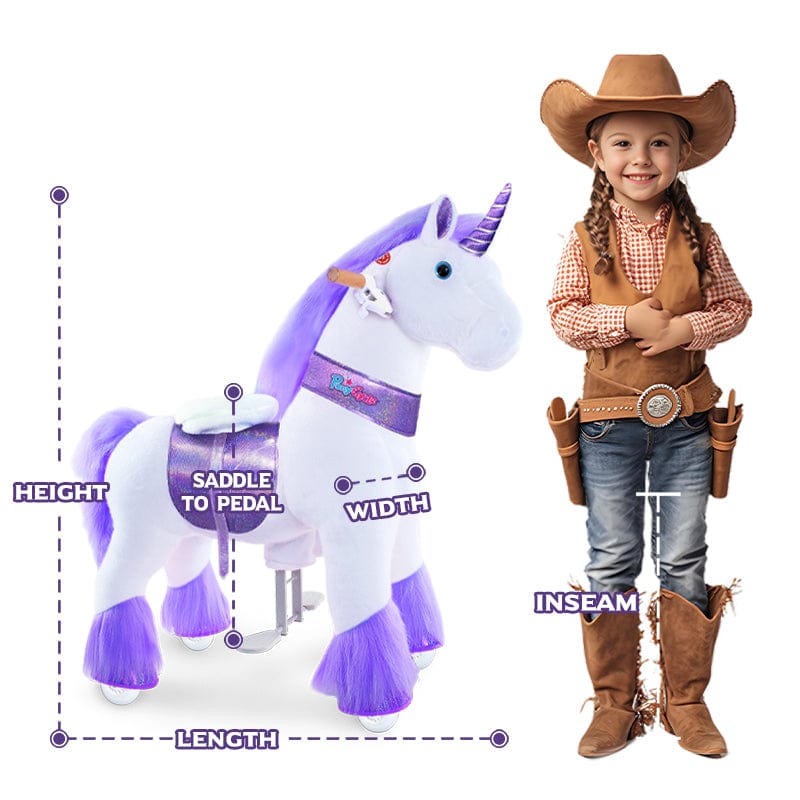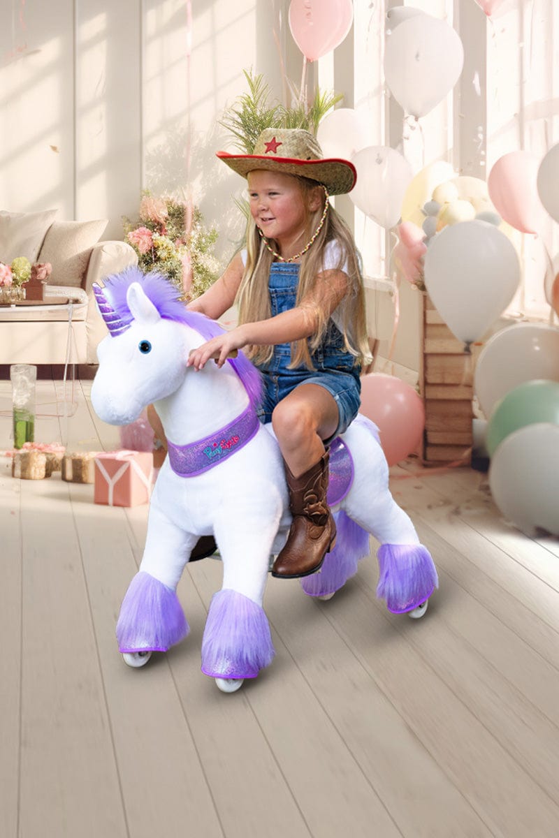 Model U® Ride-On Unicorn Age 4-7 Purple with a random accessory