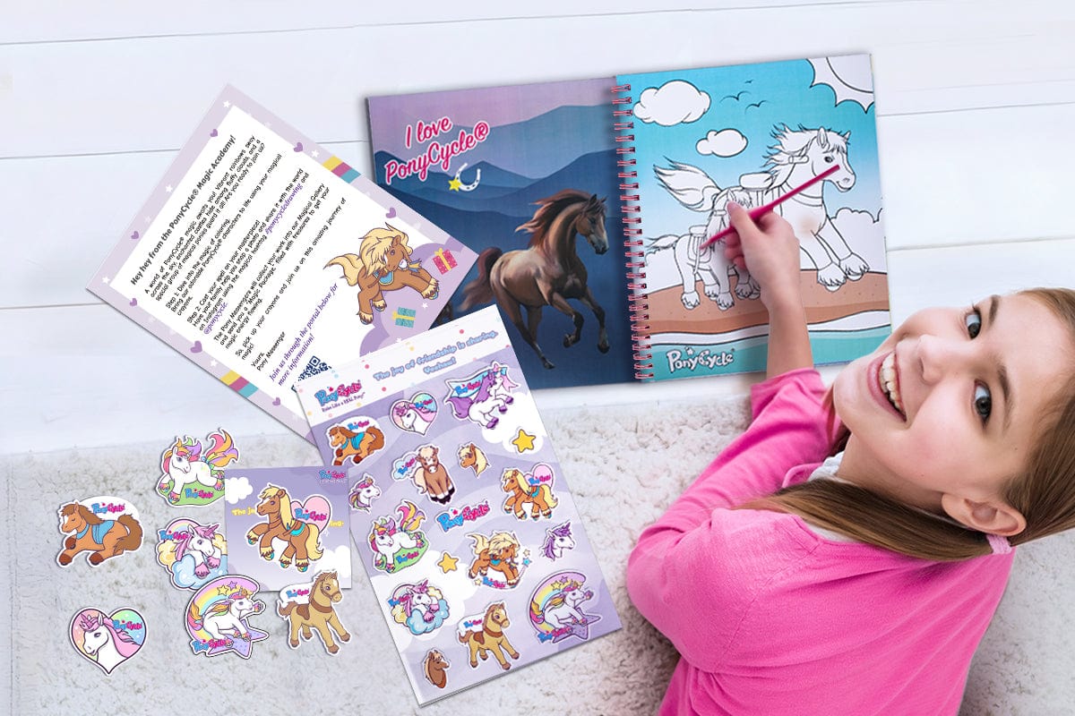 Each page features a different scene with various ponies. Start a new adventure with PonyCycle®!